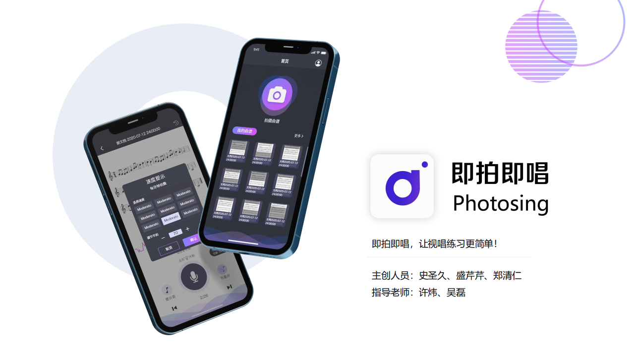 参赛队伍是:①即拍即唱:史圣久、盛芹芹、郑清仁②记忆达人:陈雅楠、邹雅、毛泓沁。其中,即拍即唱是一款服务于音乐学习者(含专业艺考和业余音基/音乐素养考试)的智能辅助练习APP。它能够通过拍照识别纸质视唱乐谱,并根据乐谱对练习者的视唱进行自动评分,给出音高及节奏的反馈。它有效融合了视觉人工智能和音频人工智能算法,为视唱练习者提供了恰到好处的贴心服务。由于采用拍照识别乐谱的方式,也解除了相应的版权险,给用户更大的自由,也给音乐出版与服务业态提供了更大的拓展空间。