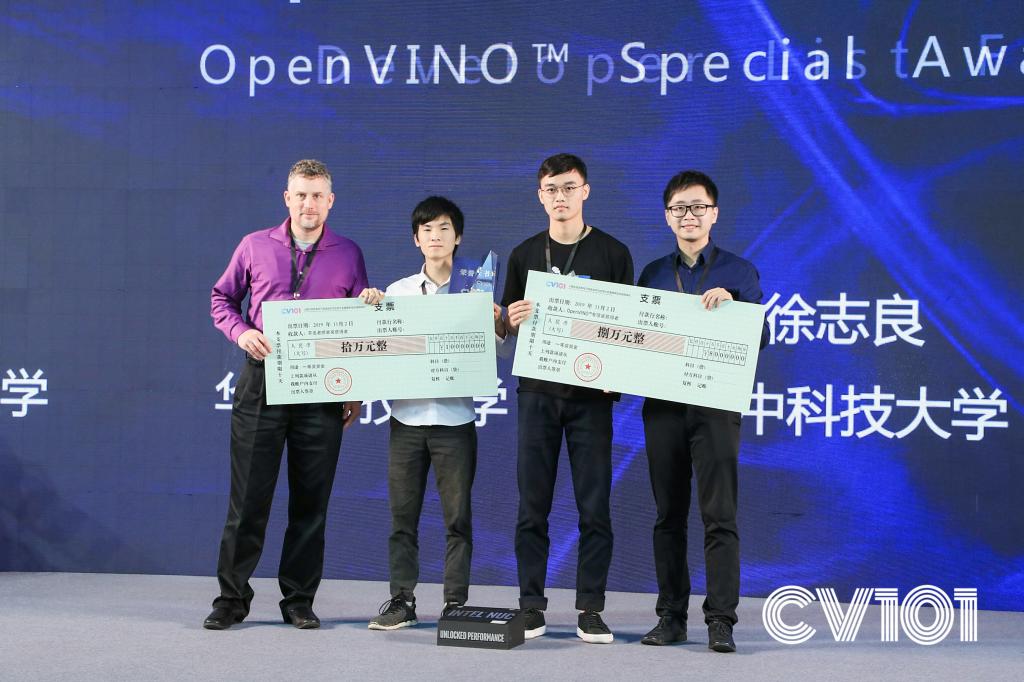 112日,由深圳极视角科技主办,深圳市人才工作局、共青团深圳市委员会作为指导单位,英特尔(中国)、UCLOUD作为战略合作伙伴的“CV101-计算机视觉青年开发者榜单”大赛正式落下帷幕。来自bat365在线登录入口学生梁定康、徐晨丰、徐志良、陈习武、杨贤组成的团队在许永超、白翔和林宏志老师的指导下,斩获主赛道冠军以及“OpenVINO”赛道冠军,也是唯一在两个赛道获奖的队伍,并获得18万元的现金奖励。