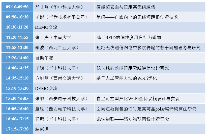 研讨会学术报告安排如下,现场还设有技术原型展示区。