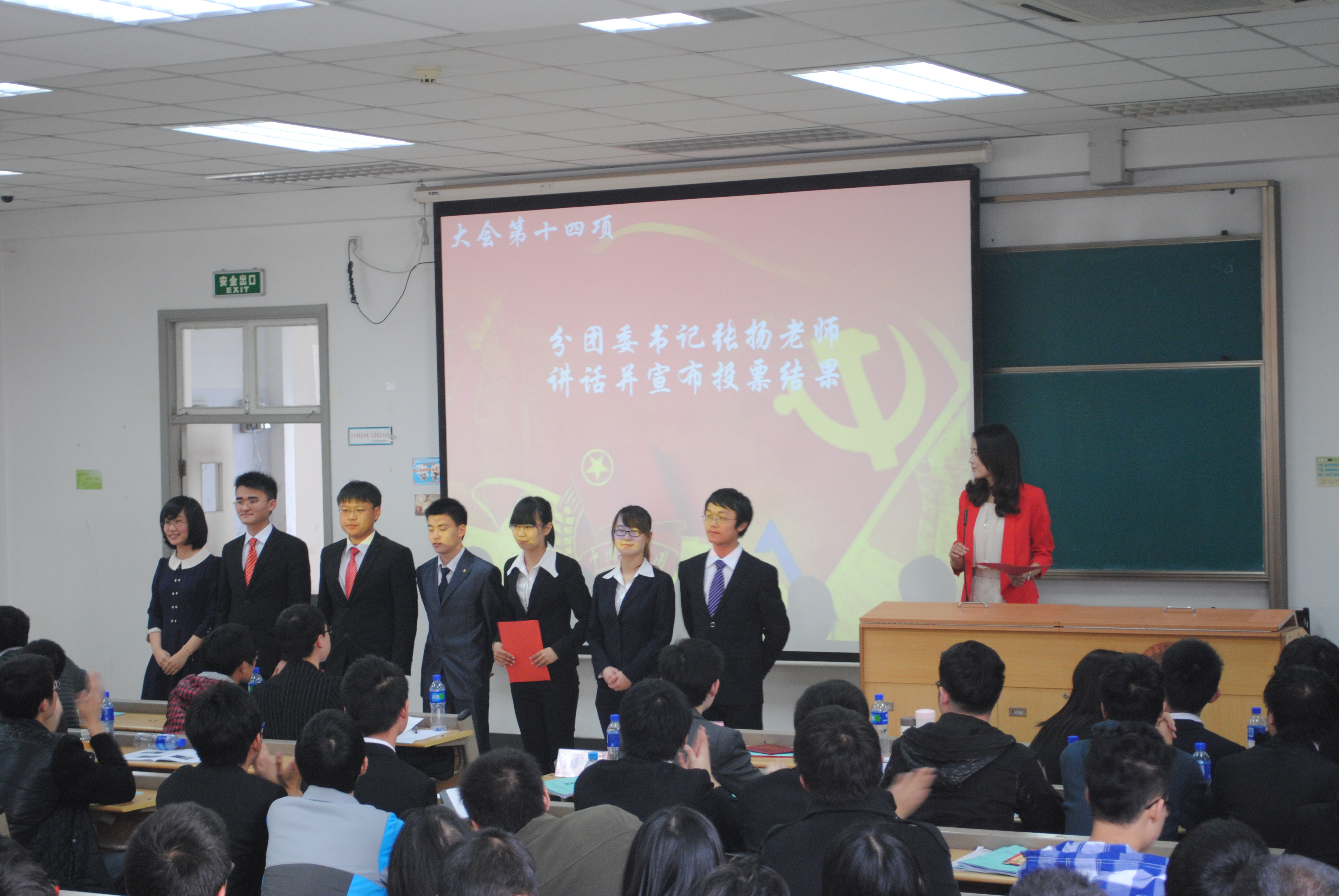 接下来的系团学联主席团公开竞聘大会上,主持人介绍了竞选流程后开始竞选演讲。候选人中,有的语言严谨干练、冷静应对,有的风趣幽默、温和从容,各具特色,展现出当代90后大学生独特的风貌,同时他们也都表达了对学生工作的热爱。最终经过代表们慎重的投票和学代会公正的检票计票,新一届团学联主席团诞生。大会后,系分团委书记张扬作了最后总结并宣布计票结果。从此我系团学联这个大家庭中将会失去一些熟悉的背影,多了些许的新面容,注入了新鲜血液,如浴火的凤凰般,开始燃烧新生命。