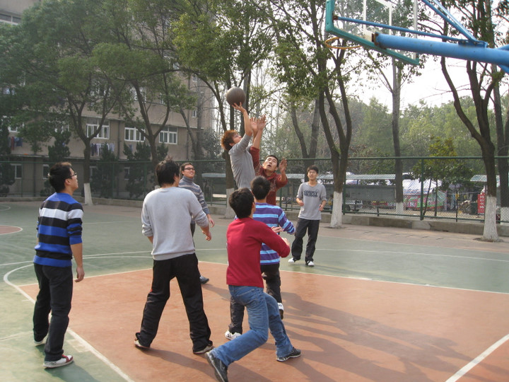 中午1200,各部门成员在主席团和部长的带领下到篮球场集中,开始了今天的团学联联谊。这次活动主要包括男子篮球赛和女子趣味篮球赛。本次大赛男生共有十支队伍,分别是主席团代表队,组织部与实践部联合代表队,心理部和新闻部联合代表队,文艺部代表队,体育部代表队,办公室代表队,网络部代表队,外联部代表队,权益部代表队和学术部代表队;女生共有八支队伍,分别是主席团和新闻部,组织部,心里部,女生部,文艺部,宣传部,网络部,外联部。男生比赛为每队四人打半场,上半场和下半场各十五分钟。女生趣味篮球赛为两人一队,在三分钟内进行趣味投篮。