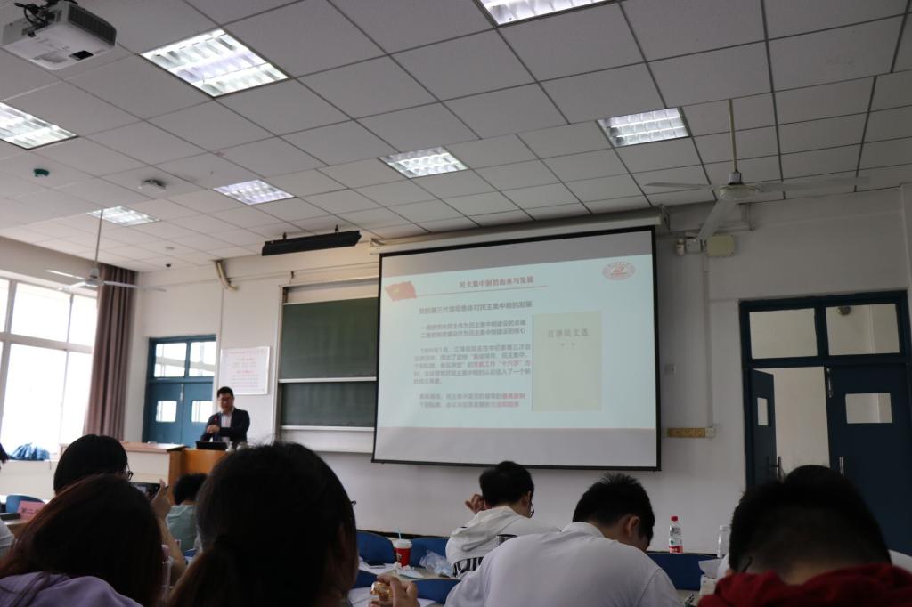 随后,段政老师为大家讲解了“中国共产党的组织原则和纪律”。段老师强调,民主集中制是中国共产党的根本组织原则,并从由来与发展、基本原则和辩证关系等角度来阐述民主集中制。最后段老师结合党章内容,对党的纪律进行了较为详细的介绍。