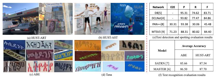 基于阿姆哈拉语的文字图片识别是一项极具挑战性的任务。为了解决构成阿姆哈拉语的不同字母具有高度的视觉相似性、目前缺乏公开的面向非洲文字理解的文字数据集等难点,王兴同学在白翔教授的指导下,提出了首个全面的、公开的阿姆哈拉文字识别数据集,包含是HUST-ART、HUST-AST、A.B.E.和Tana四个部分,总共包含了15039张真实场景的文字图像以及2927682张合成的文字图像。针对该数据集,王兴与合作者设计了大量的实验,以评估目前最先进的文字识别方法在该数据集上识别阿姆哈拉语文字的性能。