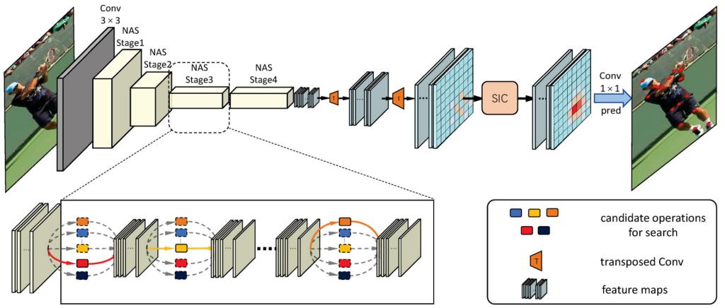 论文研究了视频图像中的人体姿态估计问题,这是视觉媒体领域最重要的任务之一,在元宇宙、虚拟现实、游戏交互、生活辅助等场景有广泛的应用价值。该论文提出了一种新的高效计算框架(EfficientPose),该框架相较于传统姿态估计方法在计算效率上取得了显著提升,同时维持了高水平的预测精度。EfficientPose框架主要包含两部分,即高效骨干网络和高效头部网络。文章通过可微分的网络架构搜索,以极低的计算代价自动化设计骨干网络,骨干架构在优化过程中既能面向姿态估计任务进行特异性调整、又能优化架构计算效率;另外,论文还提出了空间信息矫正模块,其以极小代价有效解决了预测中的棋盘效应,进而提升预测精度。