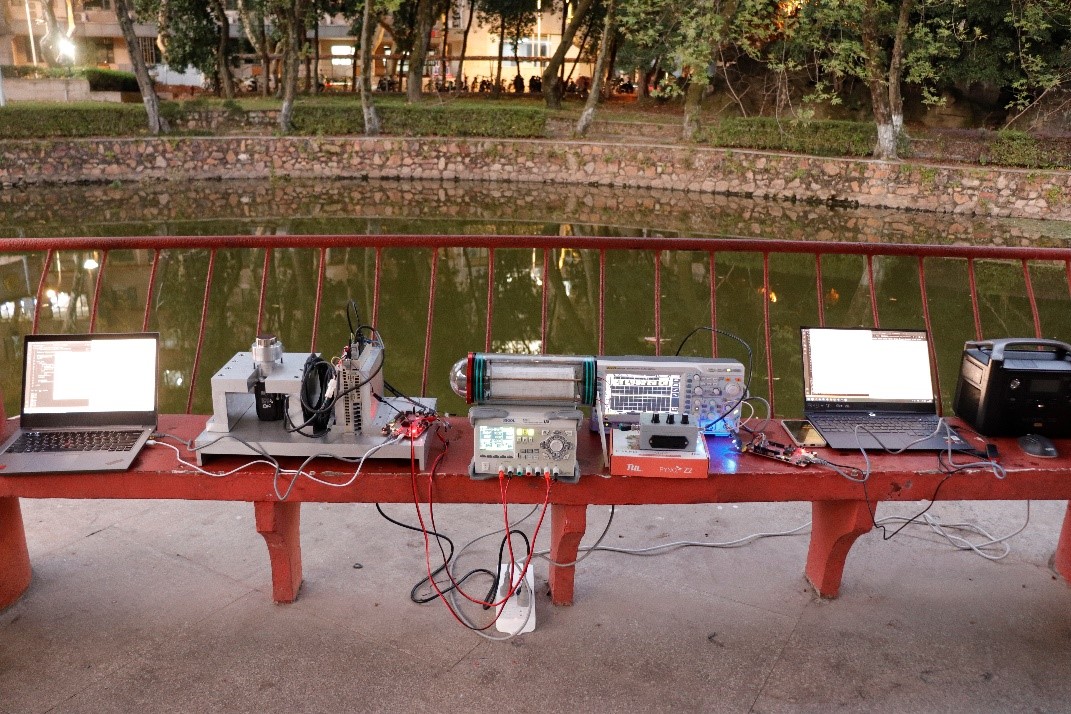 “可软件定义的宽带水声OFDM通信系统”项目获全国二等奖,团队成员为bat365在线登录入口研究生黄运龙、汪思翔和本科生刘可立,以“老”带“新”,协作攻关。从理论研究到原型验证平台开发,从室内水箱测试、到室内水池测试、再到室外湖泊测试,团队历时两年,攻克多项技术与工程难题。经过广泛的测试验证,系统功能逐步完善,目前已实现中心频率、可用带宽、发射增益、编码方式、编码率、调制阶数、载波数量等主要通信与信号处理算法/参数的可软件定义,可实现文本、语音、图像、视频等数据的实时采集、发送、接收和显示。