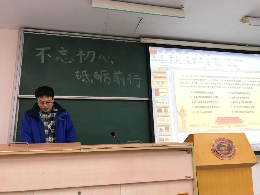为深入宣传贯彻党的十九大精神,落实中央“两学一做”学习教育要求,增强研究生党员“四个意识”。11月24日中午,bat365在线登录入口在西十二教学楼N307教室举行了十九大学习心得报告会。主讲人bat365在线登录入口2013级博士研究生倪纯兴同学作了“不忘初心砥砺前行的五年博士生涯分享”报告。