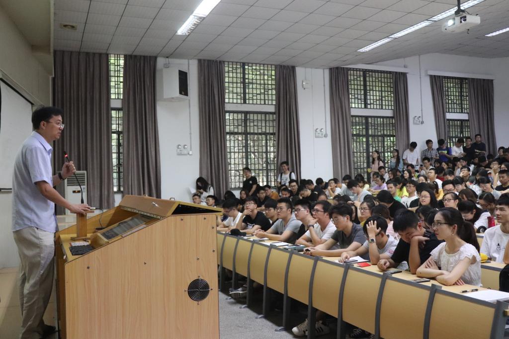 分管研究生培养的副院长葛晓虎教授向各位研究生新生介绍了研究生的常务事务。作为国家绿色通信与网络国际联合研究中心主任,湖北省绿色宽带无线通信国际科技合作基地主任,IEEE高级会员,在讲话中,葛教授向各位研究生新生提出了殷切期望。他表示,希望每一位同学都能在研究生期间掌握扎实的理论基础,培养丰富的实践能力;要时刻专注自己研究领域的最新科研动态,多与导师和同学交流讨论。