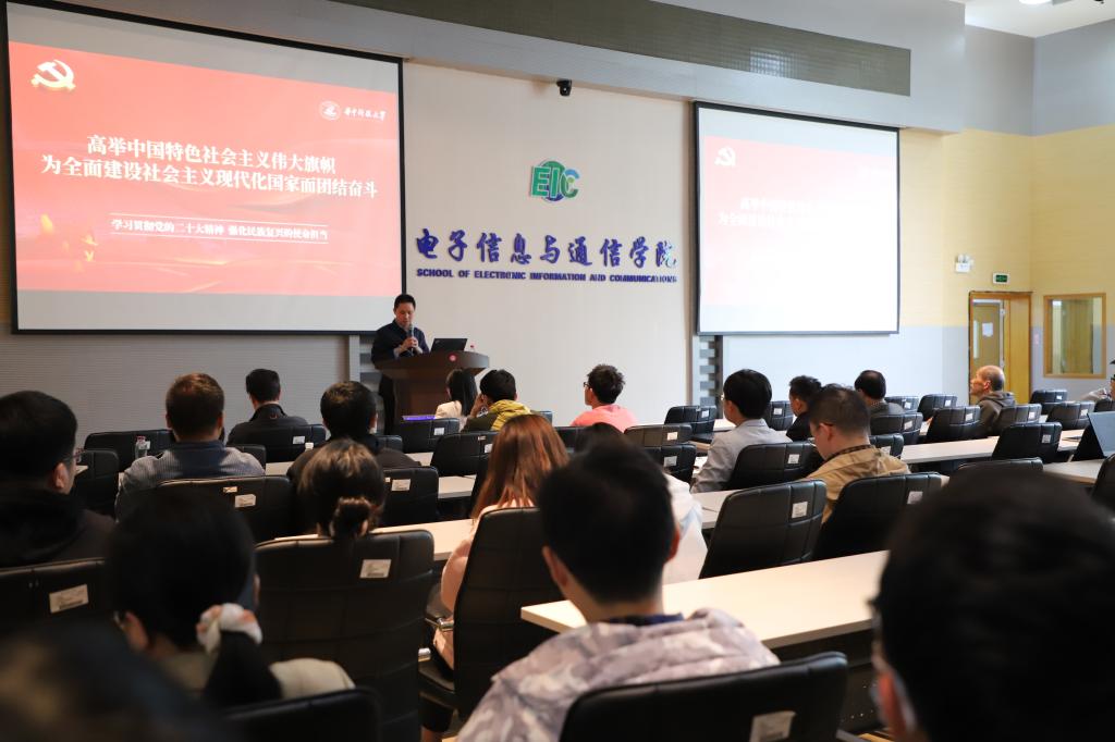 张明新作了主题为“高举中国特色社会主义伟大旗帜,为全面建设社会主义现代化国家而团结奋斗——学习贯彻党的二十大精神,强化民族复兴的使命担当”的宣讲报告。他围绕党的二十大报告的主题及主要成果、过去五年的工作和新时代十年的伟大变革、马克思主义中国化时代化、中国式现代化、全面建设社会主义现代化国家的目标任务、坚持党的全面领导和全面从严治党、积极应对风险挑战等七个方面进行了细致深入地分析解读;从历史、经济、文化、社会等多个角度剖析了党的二十大在政治上、理论上、实践上取得了一系列重大成果,深度阐明了“两个确立”是新时代最重要的政治成果,重点讲述了中国式现代化的本质要求和党的二十大在科技、教育、人才方面的统筹部署精神;他激励师生心怀“国之大者”,使命在肩,不负时代,为全面建设社会主义现代化国家、全面推进中华民族伟大复兴而团结奋斗。