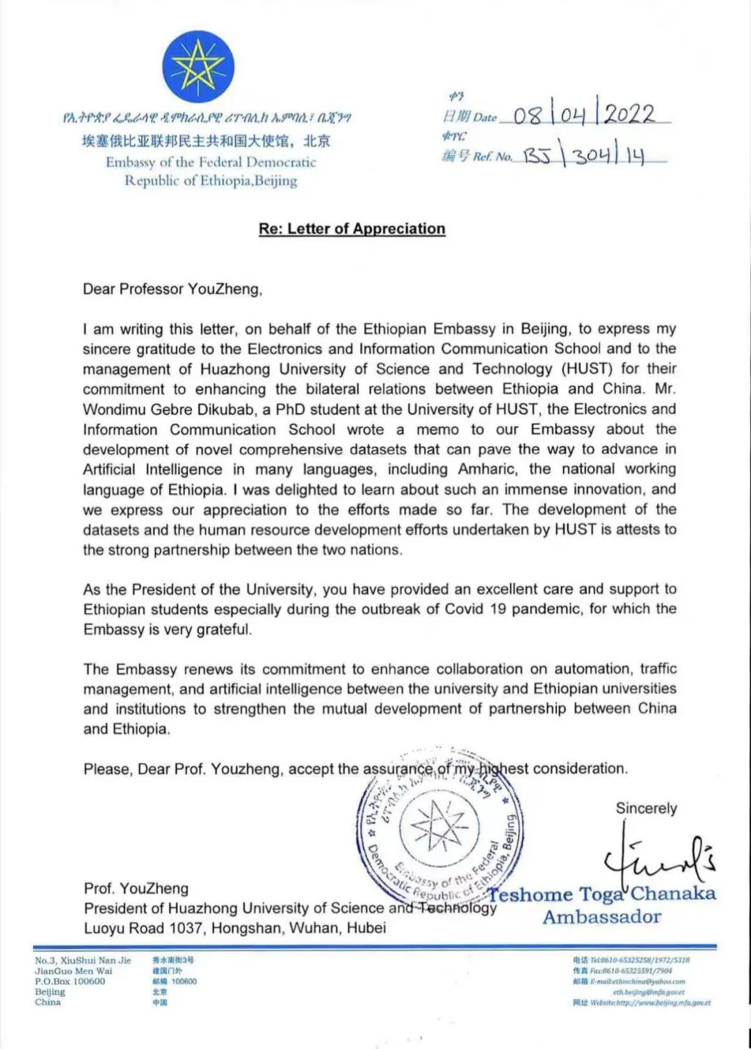 近日,在人工智能与自动化学院教授、测控技术“一带一路”联合实验室副主任白翔的指导下,王兴发布了首个阿姆哈拉语场景文字检测与识别综合公共数据集和初步的算法解决方案。其论文“Comprehensive Benchmark Datasets for Amharic Scene Text Detection and Recognition”发表在国内计算机领域顶级期刊SCIENCE CHINA Information Sciences上。