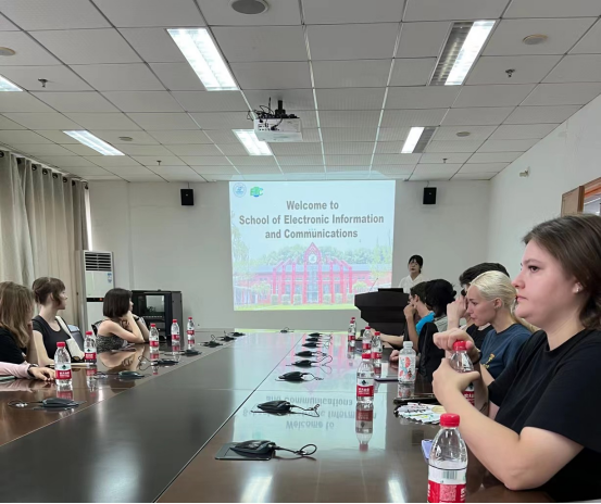 廖振宇带领下国际学员们实地参观了院长邱才明教授团队的 “移动通信与智能系统”实验室。廖振宇详细介绍了团队研究方向,展示了团队近期围绕下一代无线通信技术中的智能反射面(RIS)和通感算一体化技术开展的研究和相关成果,并介绍了团队未来研究方向和实习课题。参观结束后,项目学员对团队的研究产生了浓厚的兴趣,就未来人工智能中的大语言模型在高等教育中的应用、安全可信人工智能技术的未来发展趋势等话题展开了热烈的讨论。