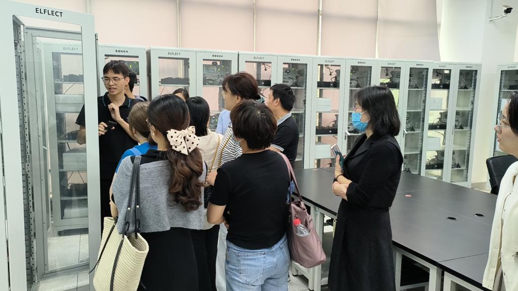 之后深圳市易星标技术有限公司工程师介绍了实验中心部署的线上线下融合的实验教学平台,演示了线上线下实验教学系统的使用方法,并带领来访老师们参观整个系统。
