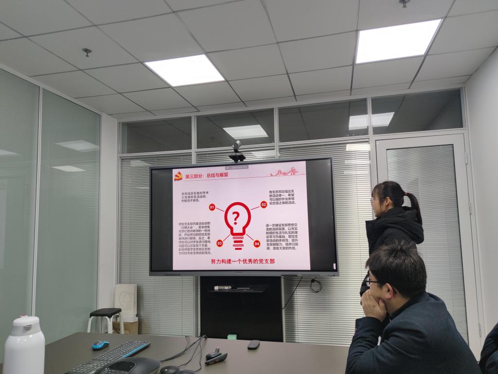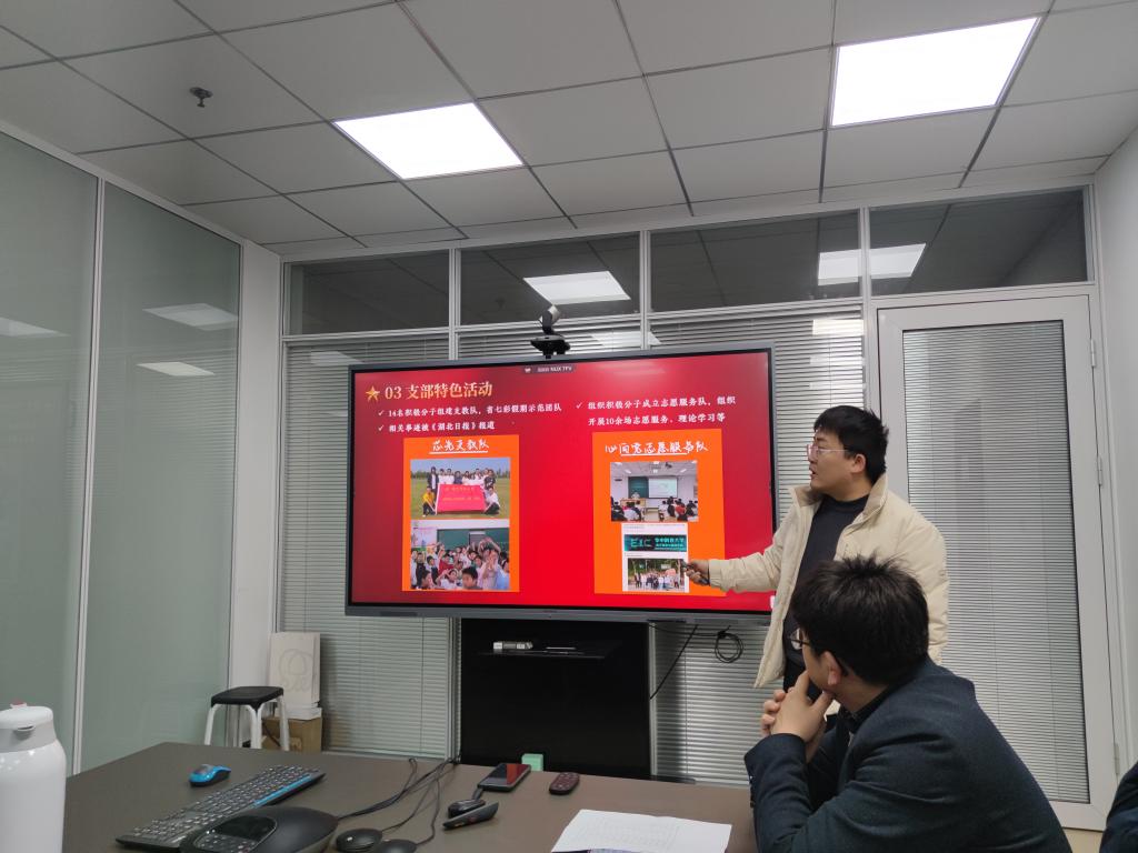 党建辅导员张焕宸做总结发言。他对各学生党支部过去一年的工作成绩给予充分肯定,同时也指出了短板和不足,并提出三点要求:一是各学生党支部要进一步提升工作规范性、制度性,做好过程管理和材料审核把关;二是支部书记要更加主动担当作为,不断加强支部内部建设,丰富活动形式;三是要充分发挥党支部的组织力和凝聚力,有效组织起支部覆盖到的同学,切实发挥党支部的战斗堡垒和思想引领作用。