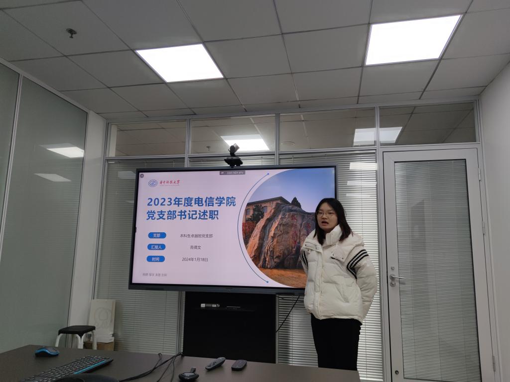 27名学生党支部书记分别进行述职汇报。各党支部书记围绕2023年度支部建设思路、“三会一课”开展情况、党员发展情况、特色做法等方面对支部工作情况进行详细汇报,并就现存问题及下一阶段的工作计划进行分析与展望。2023年,各党支部立足支部基本情况,结合支部特点,创新工作思路,勤于探索、勇于创新,积极拓展党支部活动类型、空间与内容。例如,2022级本科生党支部充分考虑到支部入党积极分子队伍庞大的特点,实行积极分子分队制度以优化积极分子管理,并以分队为单位开展经典研读、读书分享及社会实践等活动。通信系研究生第四党支部结合支部实际,提出了微主题、精细化的党课讲授模式,聚焦时政热点,融合流行元素,将党课学习内容与现实典型案例相结合,不仅提高了微党课质量,也加深了党员的理解与认识。