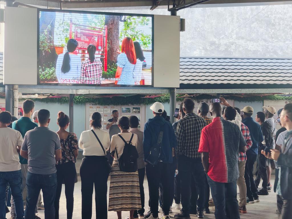 在临翔区电子商务公共服务中心,留学生体验了当地著名的普洱茶、野生蜂蜜等特色农产品,他们夸赞当地特产的优质与原生态。在忙畔村,留学生参观了社区服务中心、最美庭院,并与村民热情交谈,了解了村里以党员为纽带、以网格为单位、全体村民共同参与的网格化自治制度。