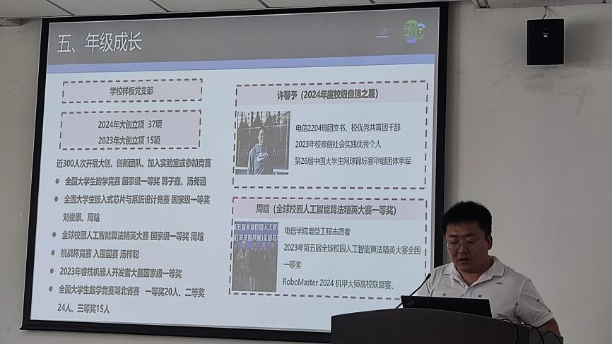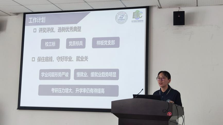 辅导员翁付成、赵广超、鲁智敏依次汇报各年级学情分析,从班级概况、专业分流、加权成绩、挂科人数、补考情况等方面进行详细介绍,总结了年级管理工作中存在的问题,并分享了班风学风建设等方面的经验和亮点,对新学期工作进行了谋划部署。
