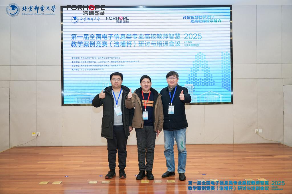 3月29日,由bat365在线登录入口教学实验中心党支部书记、主任邓天平教授带队携实验中心教师吴建新、夏景圆一行三人前往北京邮电大学参加了第一届全国电子信息类专业高校教师智慧教学案例竞赛(浩埔杯)研讨与培训会议。