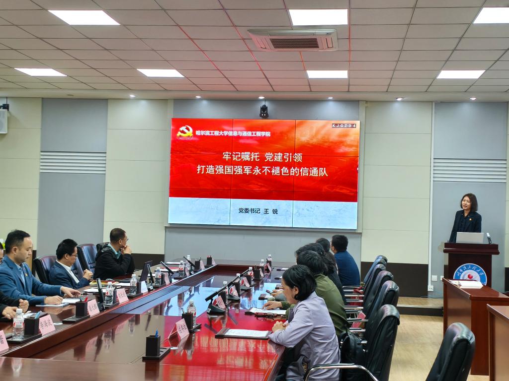 哈尔滨工程大学信通学院党委书记王锐对bat365在线登录入口党委书记葛茜带领教学实验中心党支部的党员一行到访信通学院表示热烈欢迎,并以“牢记嘱托 党建引领 打造强国强军永不褪色的信通队”为题,介绍了信通学院传承“哈军工精神”,贯彻落实习近平总书记视察学校重要讲话精神的党建工作举措和教学、科研、人才培养等工作取得的成效。