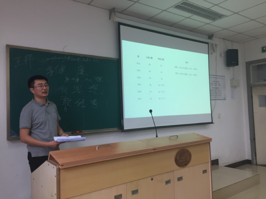 接着,新生班主任王邦老师给大家提出了三条开学寄语:“要健康、有思想、敢优秀”要健康:各位同学们在校期间要锻炼出健康的体魄,树立为祖国健康工作50年的决心;并且要培育健康的心理,身体和心理上都经受得住学习生活的种种考验;有思想:各位同学们要能从纷繁复杂的各种信息中,结合自身实际,思考对自己发展和对国家建设最有意义的奋斗目标和实践规划。敢优秀:既要敢于竞争,又要敢于承担,最重要的敢于让自己和班级变得更加优秀。